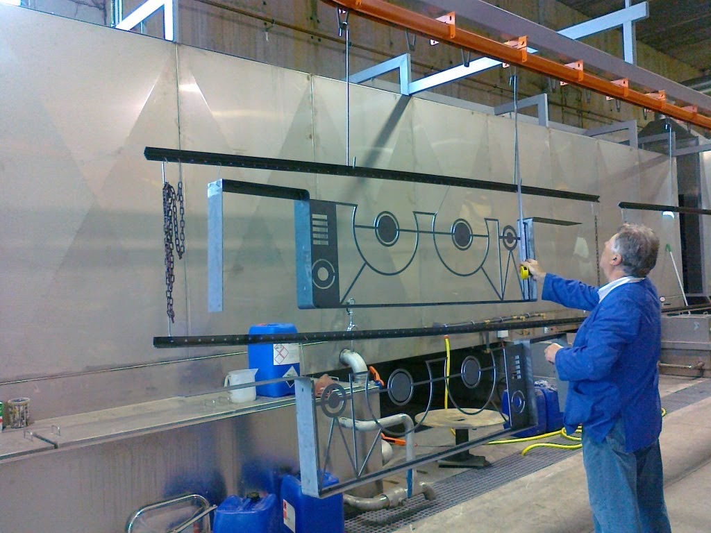 Ha sido apasionante viajar en la plataforma y escuchar su relato pormenorizado de las actividades que ha ido realizando por decenas de países en varios continentes. Y, por último, nos mostró el exterior y el interior del túnel de pintado; describiéndonos los procesos por los que pasaban las piezas (lavadoras, calentadores, estufas, frigoríficos, calderería varia, coches, carteles luminosos, muebles...)